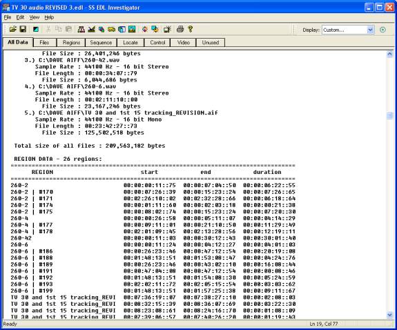SAWStudio EDL Investigator also now has a tabbed view to quickly see the different EDL data.